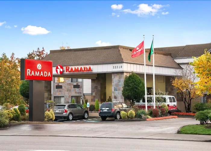 The 3-star Ramada By Wyndham Kent Seattle Area Hotel is located near the business district of Kent about a 10-minute drive from Chestnut Ridge Park. Nestled in a business area, this non-smoking inn boasts a seasonal outdoor swimming pool, a hot tub and an outdoor swimming pool.